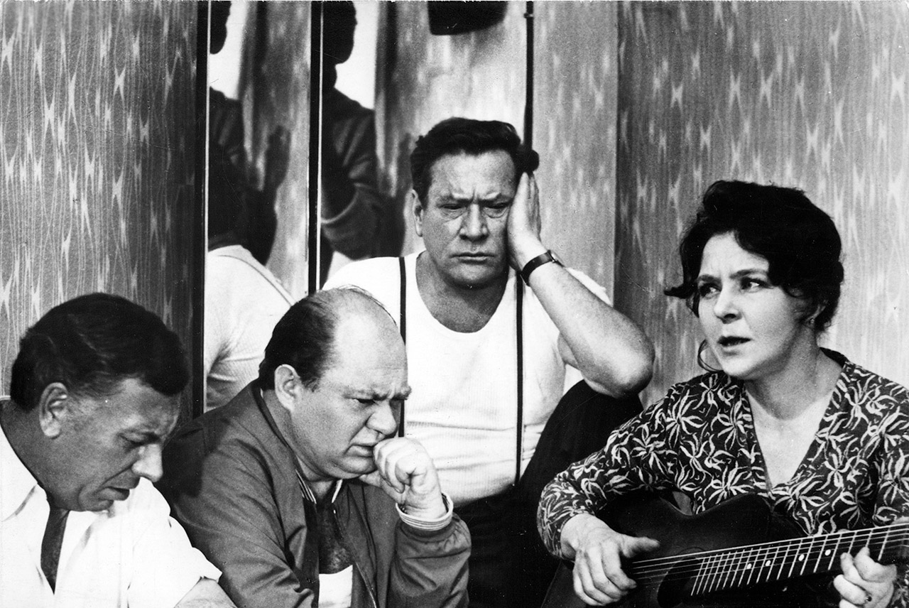 «Душевное застолье — вот чего не найдешь нигде, кроме как в советских фильмах», — писали еще во времена позднего сталинизма кинокритики легендарного французского журнала Cahiers du Cinéma, ставшие позже режиссерами «новой волны». Но если сцена про «Здесь птицы не поют» довела бы их до экзальтации, то поминальный банкет из начала заставил бы мощно удивиться. Казенные тосты, жесты, взгляды и женская истерика, положившая конец мероприятию уже до того, как была опрокинута первая рюмка.