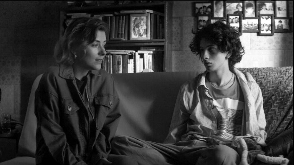 Весь образ Эйдельштейна состоит из таких маленьких «вопреки». Долговязый и худощавый, с острыми локтями и торчащими коленками, он как-то избегает угловатости как основной черты. Длинная шея то и дело выгибается и наклоняется вперед. Не потому что у Марка проблемы с осанкой — так всего лишь подчеркивается сугубая безобидность его персонажей (часто обманчивая). Когда художники по костюмам одевают его в черный оверсайз, и мы видим бесформенный силуэт, выделяются только эта самая шея и пышная копна волос на голове. Так кажется, что он и вовсе бестелесный — здесь совсем нет силы, один только дух.